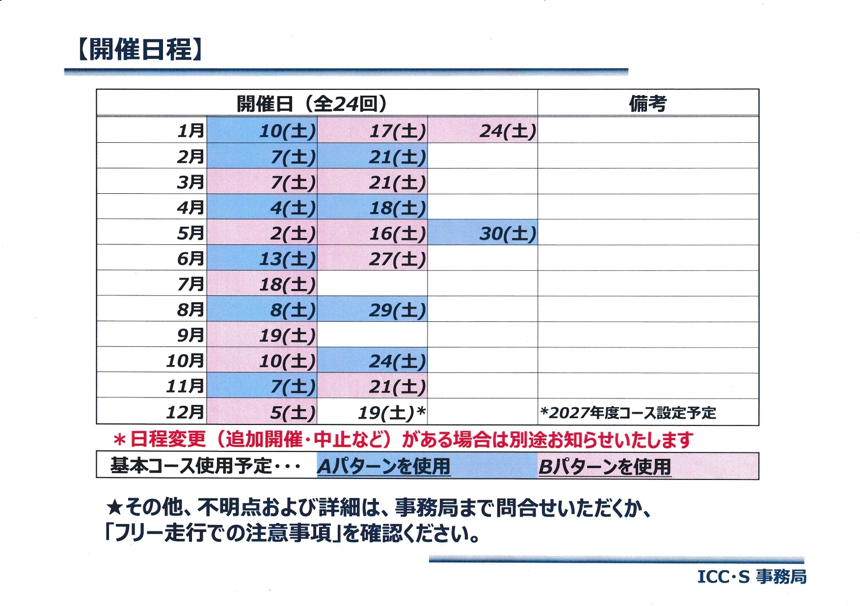 走行するコースは、午前中は、2026年の指定コース。日程により、Aコース、または、Bコースの走行となります。